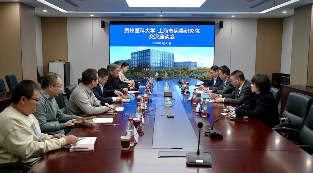 近日,贵州医科大学党委书记汤磊,校党委副书记、校长俞松一行前往上海市病毒研究院交流学习。上海市病毒研究院院长管轶、副院长史卫峰及相关工作人员出席座谈会。
