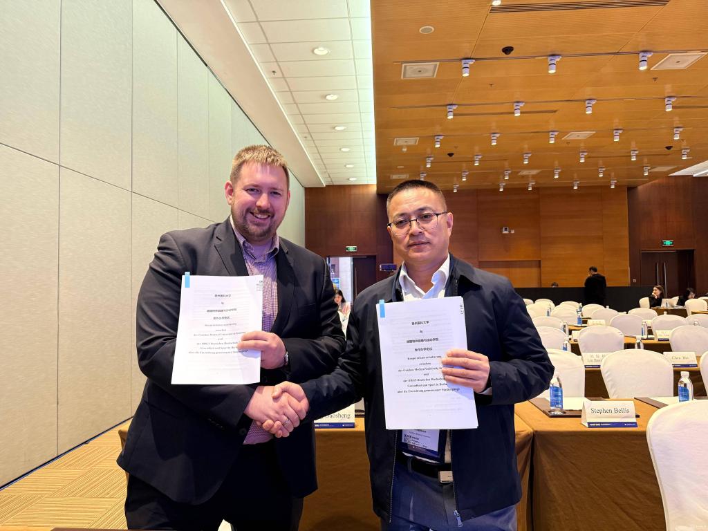 会议期间,潘卫东与德国柏林健康与运动学院副校长Amadeus Werner 先生见面,讨论两校合作事宜,并交换了两校合作协议。