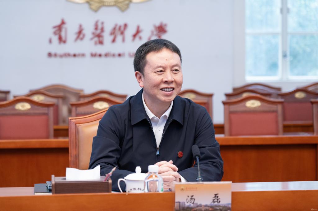 汤磊对南方医科大学长期以来的关心和支持表示衷心感谢,并围绕贵州医科大学的办学历程、学科建设、人才培养与科研创新等情况作系统介绍。他指出,贵州医科大学立足西南区域特色,在喀斯特药用植物资源研究、民族医药传承创新等领域积累了扎实基础,而南方医科大学作为国内医科高校的标杆之一,在学科建设、科研攻关、平台管理运营等方面有着成熟的经验和鲜明的优势,双方在学科建设、科研协同、人才交流等方面具有广阔的合作空间。期待以此次座谈为契机,与南方医科大学建立常态化合作机制,在学科共建、科研项目联合攻关、人才互访培养等方面深化合作,携手探索校际协同发展的创新模式。
